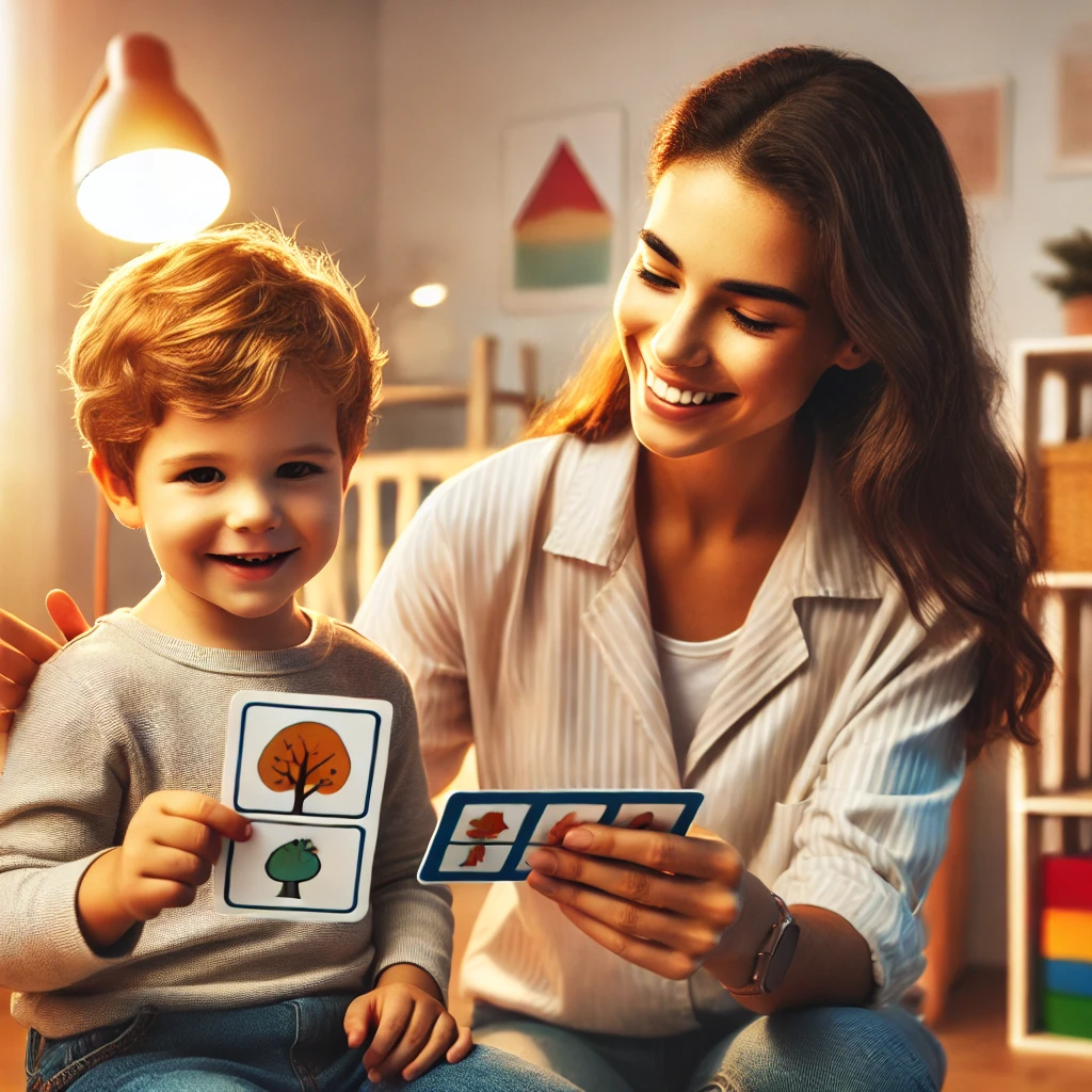 - استفاده از کارتهای تصویری: بازی با کارتهای تصویری، کودک را به بیان کلمات و جملات کامل تشویق میکند.